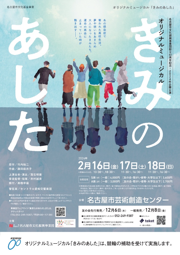 名古屋市文化振興事業団設立40周年記念オリジナルミュージカル「きみのあした」にmirai-J生徒さんが2人出演いたします。